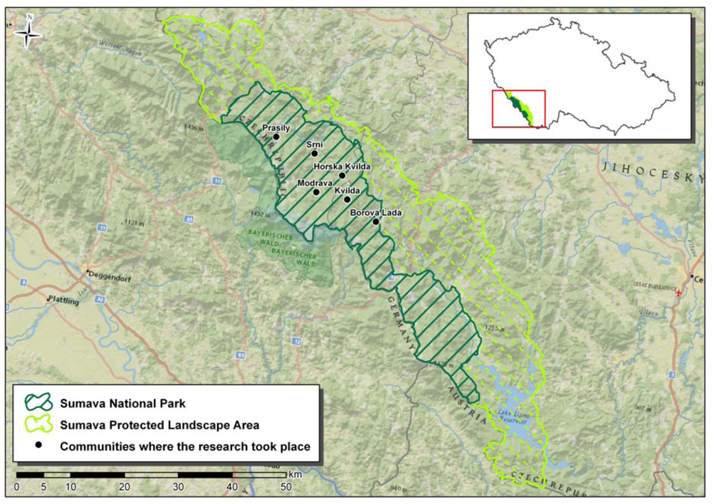 Map of the Sumava National Park and the Sumava Protected Landscape Area (Source: authors).