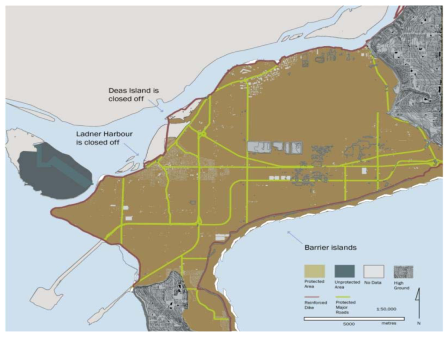 - i. A “No Action” Scenario developed in detail, taking into account a full range of impacts such as frequency of flooding projections, storm surge events, Fraser River flooding and increased rainfall intensity. This will also give a better understanding of damage costs and implications potentially avoided by the scenarios.