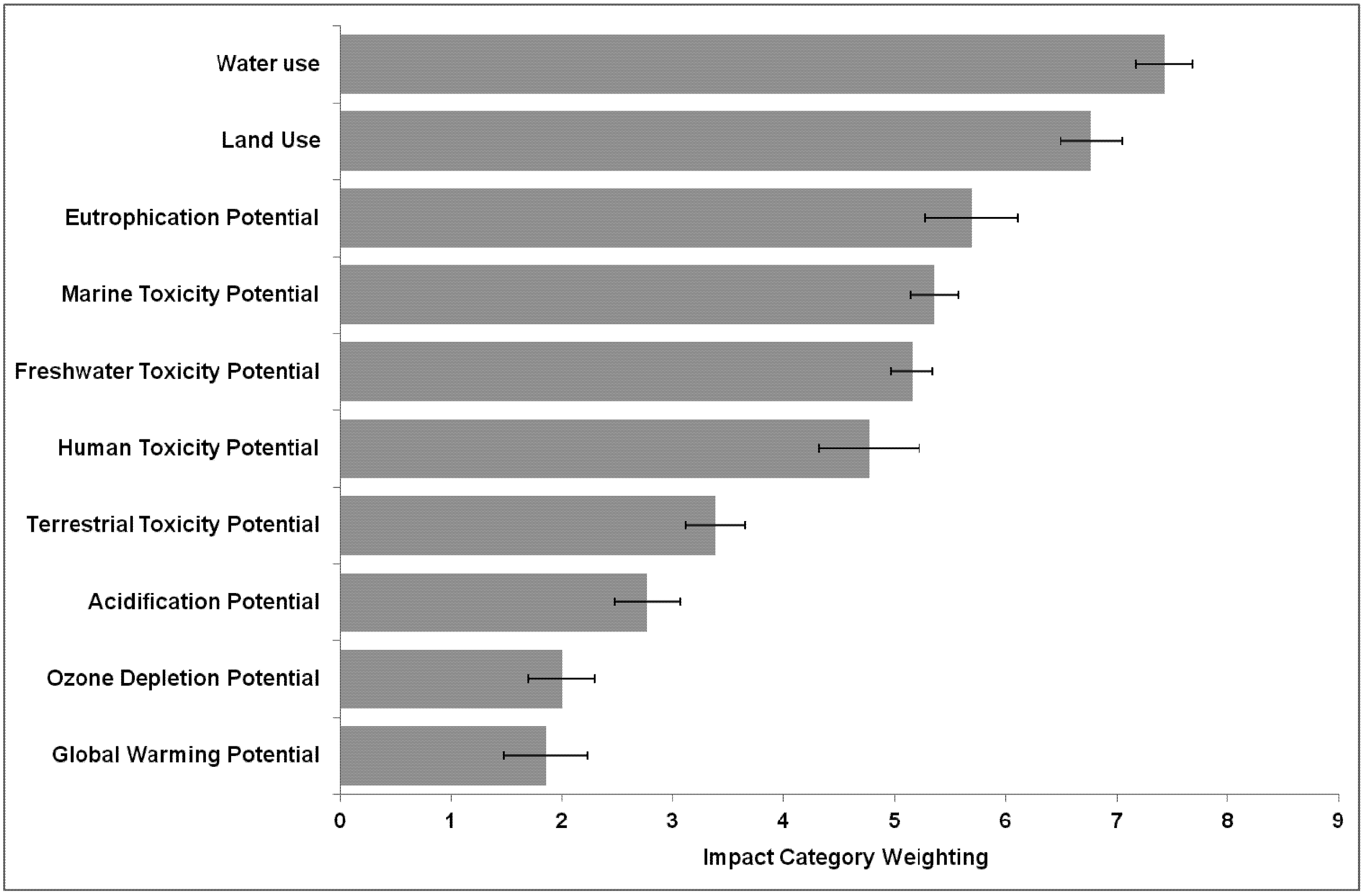 | Terrestrial Ecotoxicity Potential | The toxic effect on land based ecosystems and species [38]. | Terrestrial toxicity needs to be included because the biosolids and reuse options may be a source of toxic compounds. |