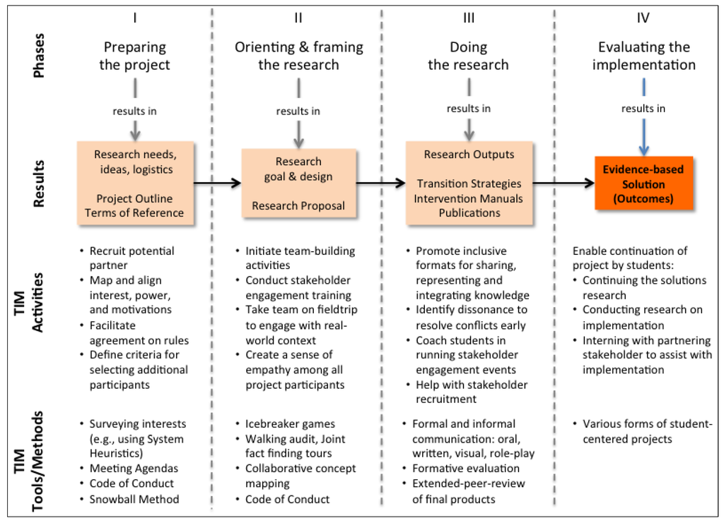 Overview of TIM’s activities along the lifecycle of participatory sustainability research projects.
