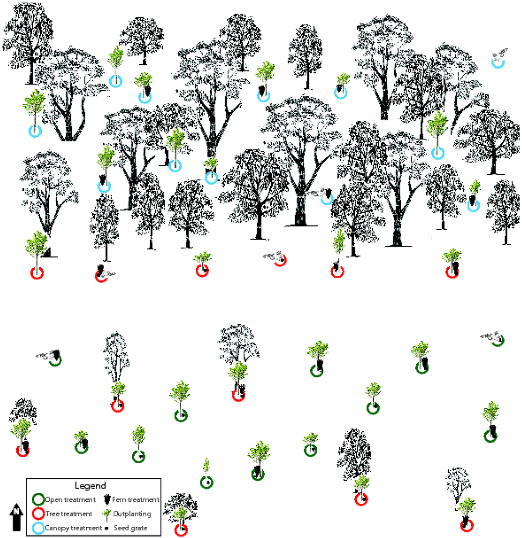 - Cole, R.J.; Holl, K.D.; Keene, C.; Zahawi, R.A. Direct seeding of late-successional trees to restore tropical montane forest. Forest Ecol Manag 2011, 261, 1590–1597. [Google Scholar] [CrossRef]