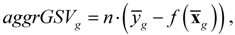 by using the sample means (e.g., the observed firms are randomly drawn from the population to the sample). If the sample is indeed representative of the population, then the aggregate GSV formula (9) can be adapted for calculating the GSV of the population by simply replacing the sample size n by the size of the population N. Secondly, suppose the firms located in a specific region do not engage in a similar set of operations and have different production technology, e.g., dairy and crop farms. In this case, one can estimate the aggregate GSV of each group first. Since the GSV measure is expressed in monetary units (e.g., euros, dollars, or pounds), one can subsequently add together the resulting GSV measures. For example, the aggregate GSV of dairy and crop farms as two separate groups located in the same region can be calculated as the sum of the aggregate GSV measures of each group: