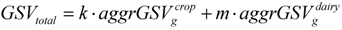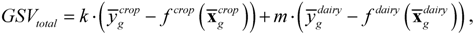 where k and m are the number of farms in the groups of dairy and crop farms, respectively. In formula (10), the expressions within the brackets are the GSVs of the representative crop and dairy farms, respectively.