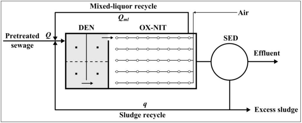 - Mixed-liquor recycle rate, Qml = 4 Q = 6 m3·h−1;