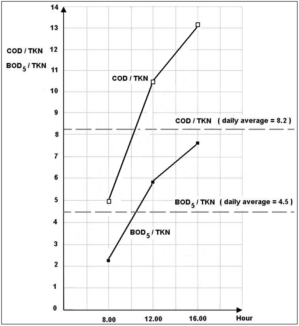 Figure 2 shows the trends of both the mean COD/TKN and BOD5/TKN ratios.