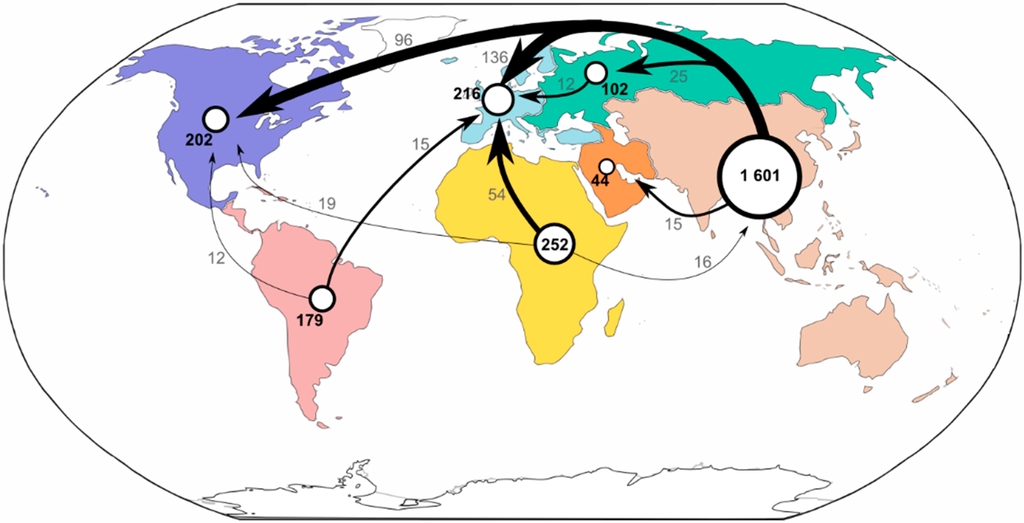| Low-skilled labor | Footprint (1,000 p-yeq) | 69,642 | 104,618 | 25,589 | 9858 | 36,885 | 768,777 | 75,923 |
