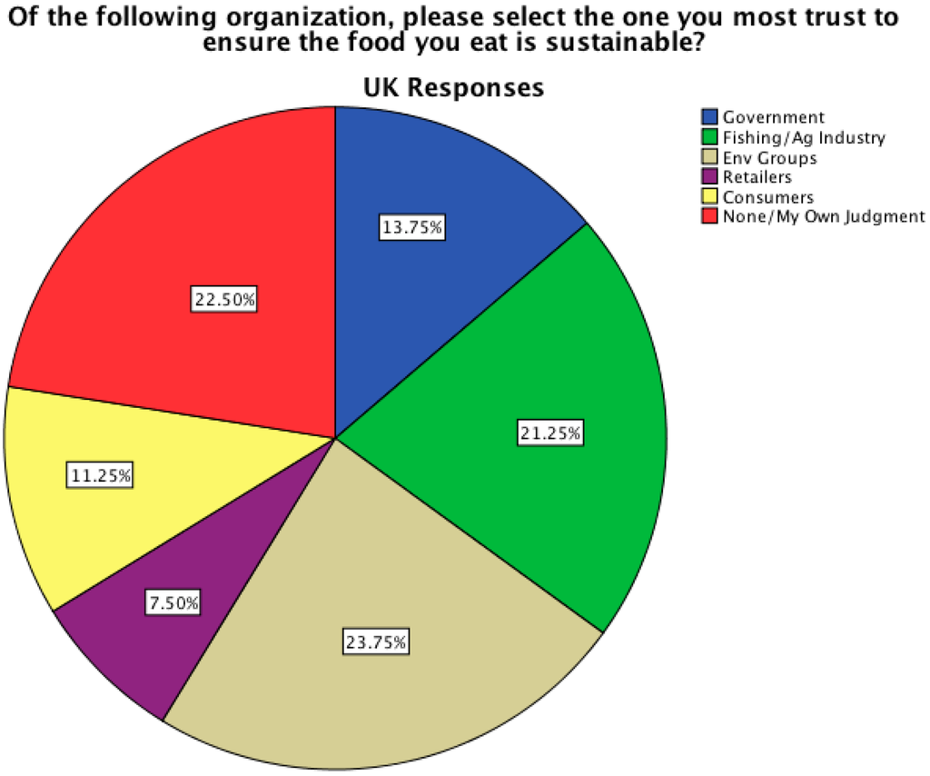 These questions are addressed below through a detailed study of consumers’ awareness of seafood eco-labels in Washington, DC and Southeast England. In addition, we examine consumers’ articulation of what sustainable seafood means, and from the results of these investigations develop recommendations as to what role consumers could play in incentivizing more sustainable fisheries.