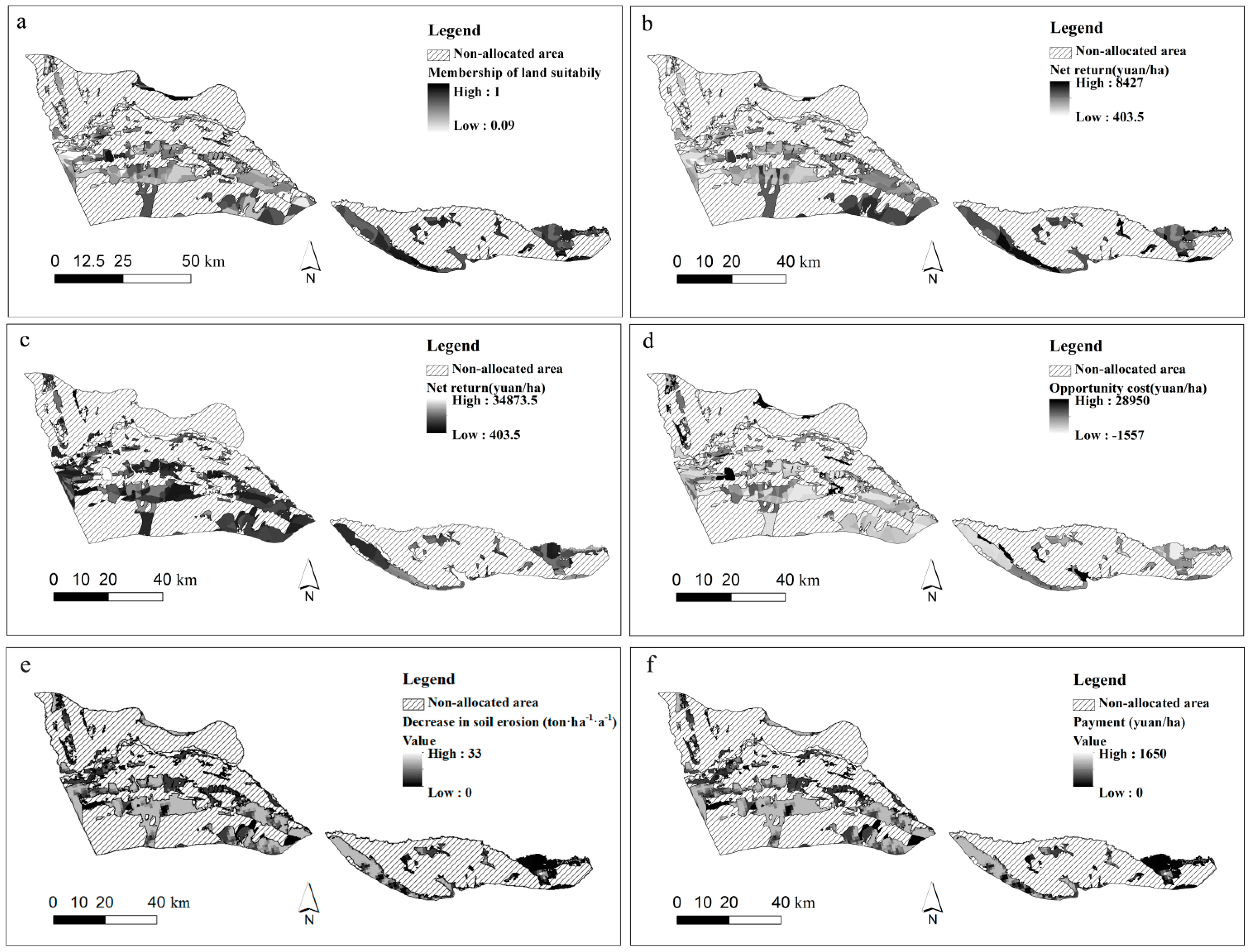 3.1. Tradeoff Analysis for Land Use Optimal Allocation by the Payment Policy