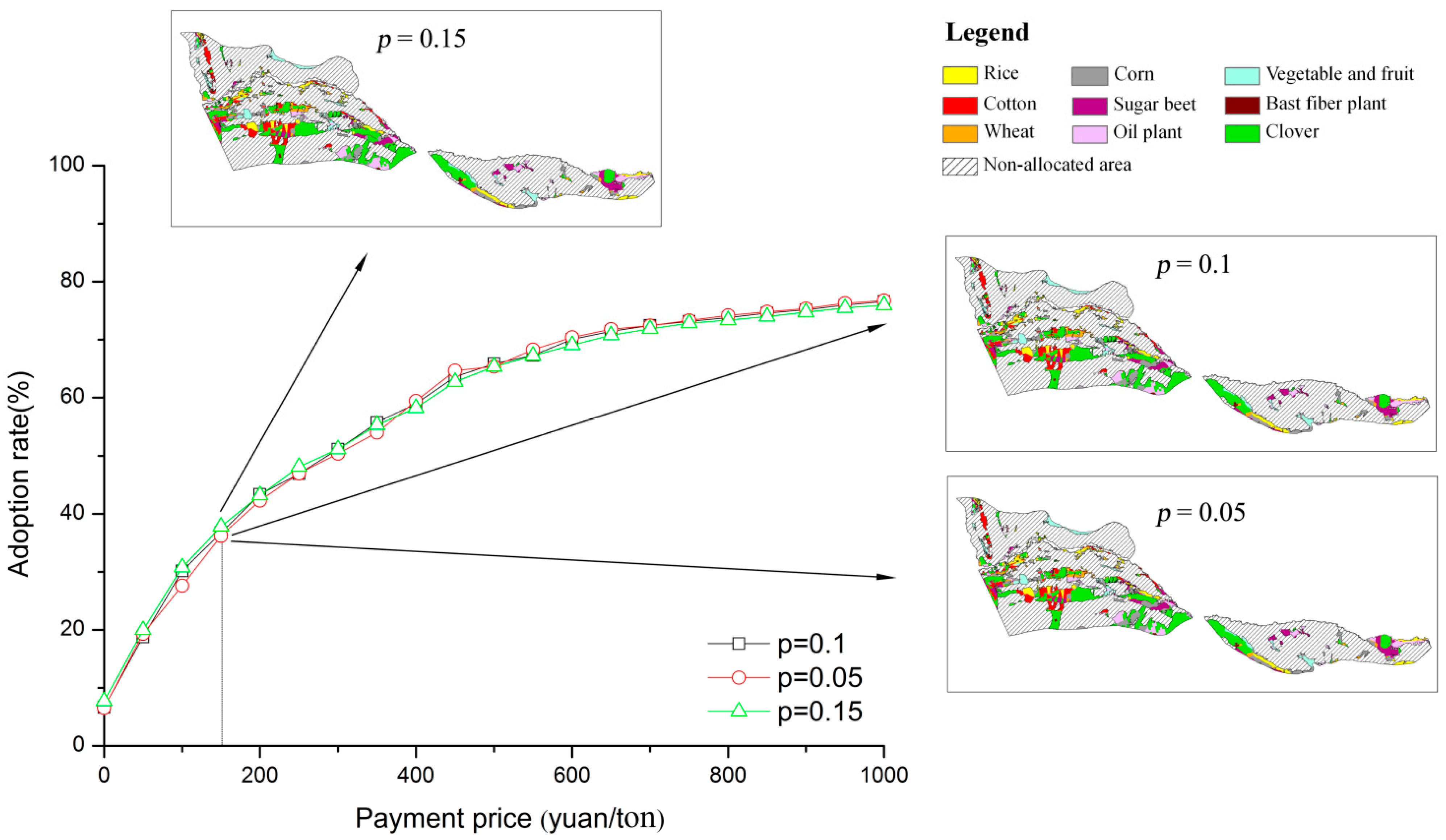 3.1.2. Tradeoff Analysis for Farmers’ Adoption by Payments