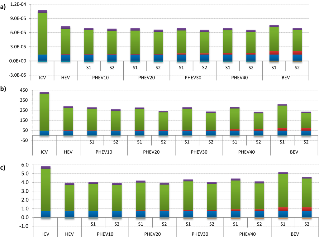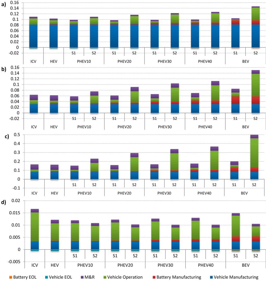 - Nordelöf, A.; Messagie, M.; Tillman, A.-M.; Ljunggren Söderman, M.; van Mierlo, J. Environmental impacts of hybrid, plug-in hybrid, and battery electric vehicles—What can we learn from life cycle assessment? Int. J. Life Cycle Assess. 2014, 19, 1866–1890. [Google Scholar] [CrossRef]