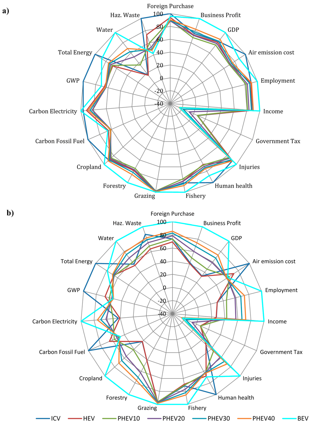 Combined applications of LCSA and input-output analysis are very limited in the literature [34]. Although the literature is abundant with studies focusing on environmental impacts of alternative vehicle technologies [1,2,13,48,49,50,51], the social and economic dimensions of adoption of these vehicle technologies were not investigated sufficiently. Moreover, studies covering economic dimensions are mostly limited to life cycle cost analyses and do not investigate the economy-wide impacts of alternative vehicle technologies. Considering that the fundamental concept of sustainability encompasses issues related to economy, environment, and society as a whole, studies analyzing issues related to the adoption of alternative passenger vehicles should not focus on only environmental or economic aspects, but should instead evaluate alternatives considering their triple bottom line (TBL) impacts all together.