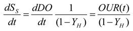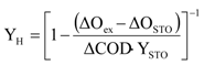 where YSTO is the yield of ready biodegradable substrate (SS) and YH corresponds to the heterotrophic cellular yield of the biomass produced (XH) by the degradation of an internal storage product unit.