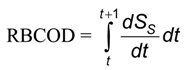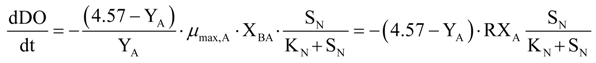 In order to describe the trends of DO and RBCOD (readily biodegradable) consumption rates, it is necessary to write ordinary differential Equations (6) and (7) (independent variable: time):