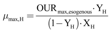 | YH,obs | Observed heterotrophic cellular yield coefficient (mgXH/mgSs) |