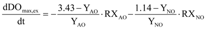 | ΔOex | Oxygen consumption due to the added substrate (mg DO L−1) |