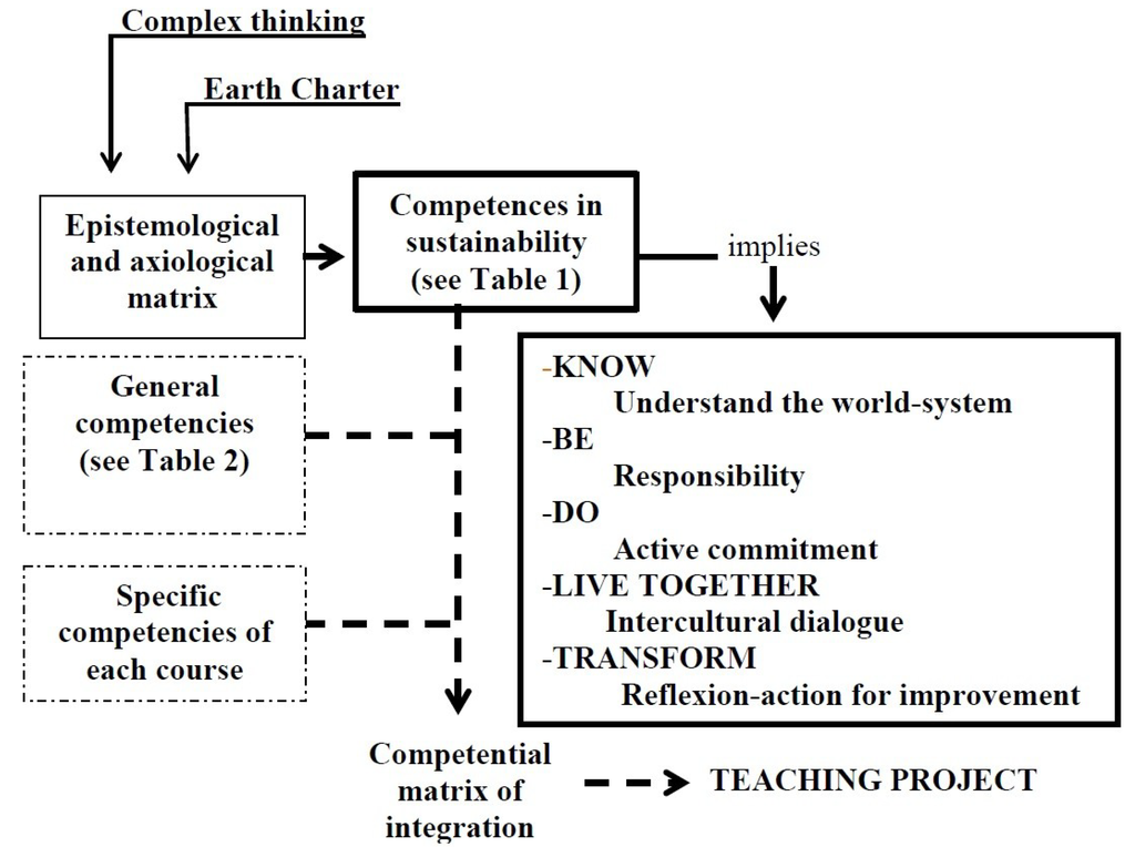 In both cases, it is about training processes that result in the acquisition on the part of the students of general competencies in sustainability, competencies that are necessary to all citizens in the different roles they must perform, as professionals, parents, neighbors, etc. There are processes whose planning requires us to seriously take into account that one of the keys of human behavior regarding the environmental problem is the world of personal meaning, beliefs and specific values of each human being []. Consequently, the competencies of sustainability have a strong component of values. For this reason we are not in the field of simple instruction, or training of skills, but in the field of education. This is the most genuine field in the university.