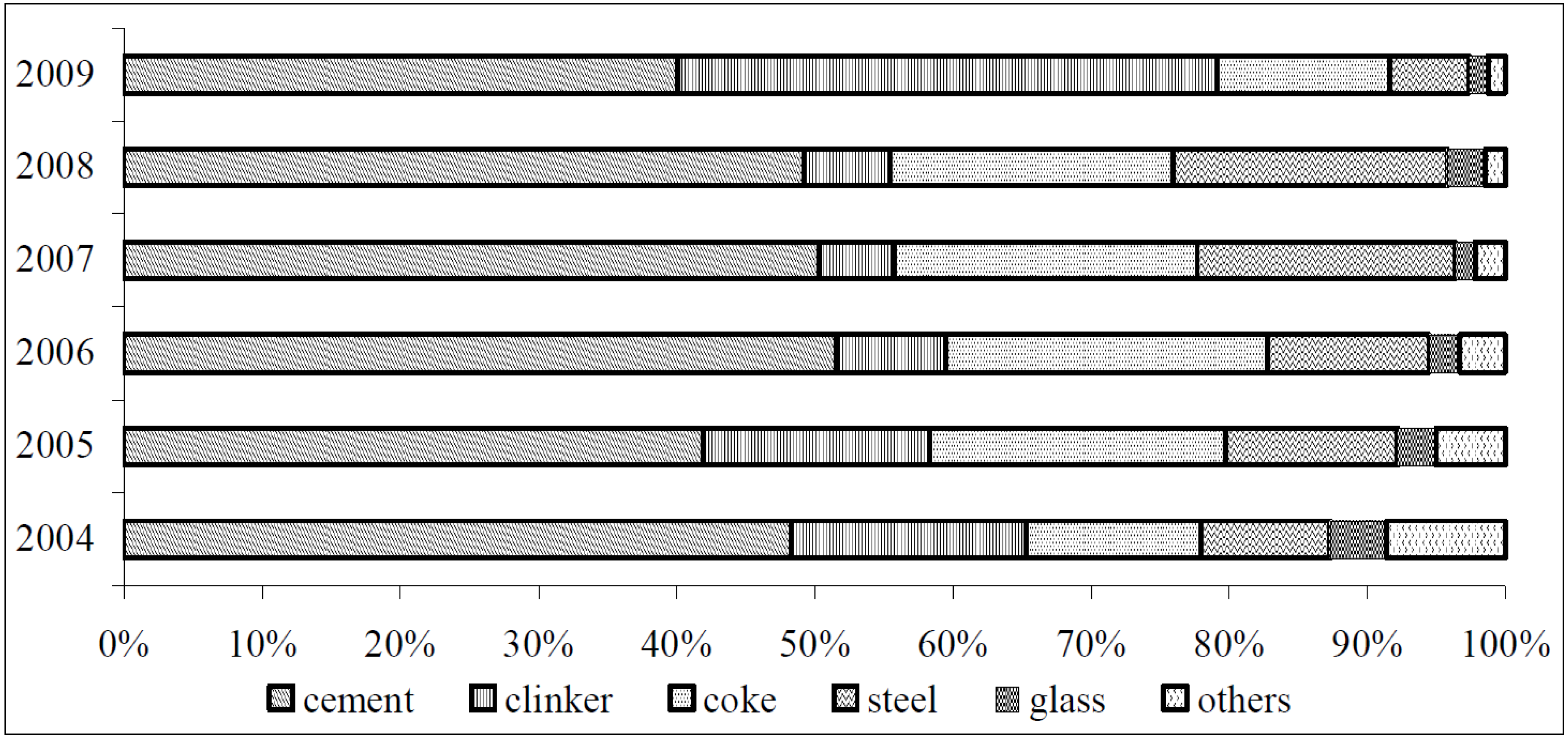 14] produced papers investigating emissions and reductions from the cement sector. However, most of the studies related to industrial GHG emission mainly focuses on GHG emissions from energy consumption. Put forward by the Intergovernmental Panel on Climate Change (IPCC), GHG emission of industrial process is usually discussed as one of the main components in the greenhouse gas emission inventory of different countries or regions, but seldom has intensive studies on its reduction potentials and relative countermeasures. A comprehensive study on industrial process GHG emission is necessary and is a new point of view that can contribute in a certain degree to the climate change.