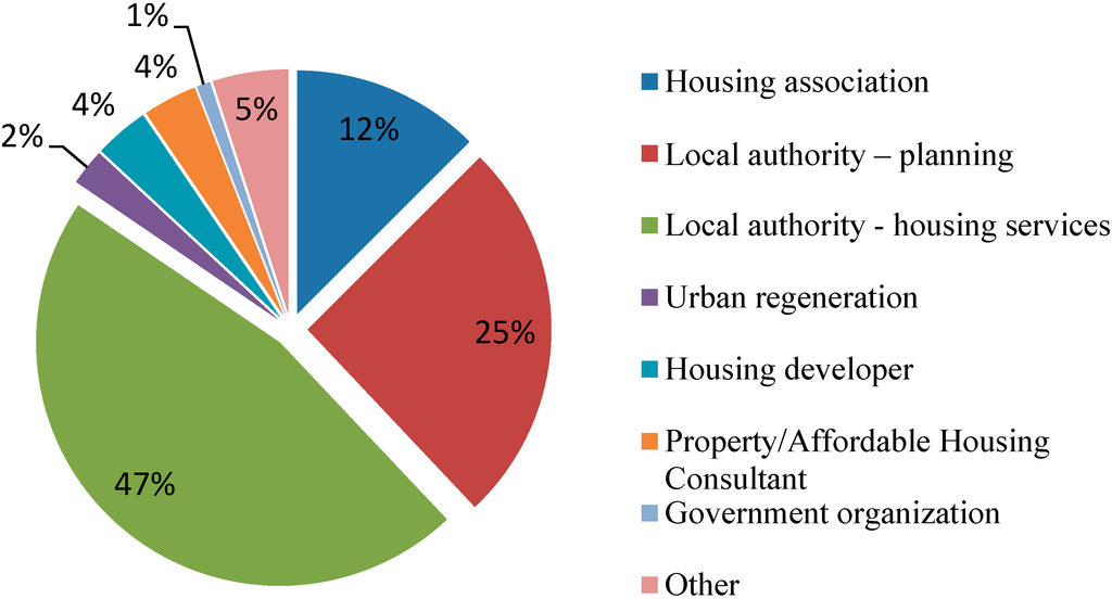 Comparing the relationship between housing expenditure (rent or mortgage) and household income is certainly the most common way to define and express housing affordability internationally [1,15,16,17]. However, the concept is multi-dimensional and goes much wider than this traditional notion. Conceptualising and measuring affordability in this manner focuses only on financial attributes and fails to deal with wider social and environmental issues such as housing quality, location and access to services and facilities. OECD countries are increasingly recognising the need for a broader and more encompassing understanding of housing affordability along these lines [14,18]. The paper frames the housing affordability problem as encompassing more than financial costs of housing and extends to larger issues of social wellbeing and community sustainability. The principal objective of this paper is to establish, validate and analyse a comprehensive set of criteria by which housing affordability can be assessed in a holistic and sustainable manner and to validate and determine the significance of the criteria using professional opinion. While it is clear from the literature in Section 2 that academic environments are beginning to have wider consideration for the factors that influence housing affordability, it is not clear whether industry professionals’ views are in line with this. Accordingly, the criteria are validated using a questionnaire undertaken with professional respondents. The questionnaire sought to determine how important, if at all, each criterion is perceived to be. Furthermore, it has been stressed that the literature often neglects the role played by professional interest groups and lobbyists in defining problems such as affordability, with different interest groups struggling to impose their own definition of the problem [14]. In light of this view, along with other researchers highlighting the lack of consensus on the meaning of affordability [19,20], the quantitative analysis presented sought to determine if different groups of professional respondents had differing opinions on criteria importance. Specifically, the analysis examines whether professional opinion varies depending on the UK region that the professional is located, and sector of the housing industry that they are employed in.