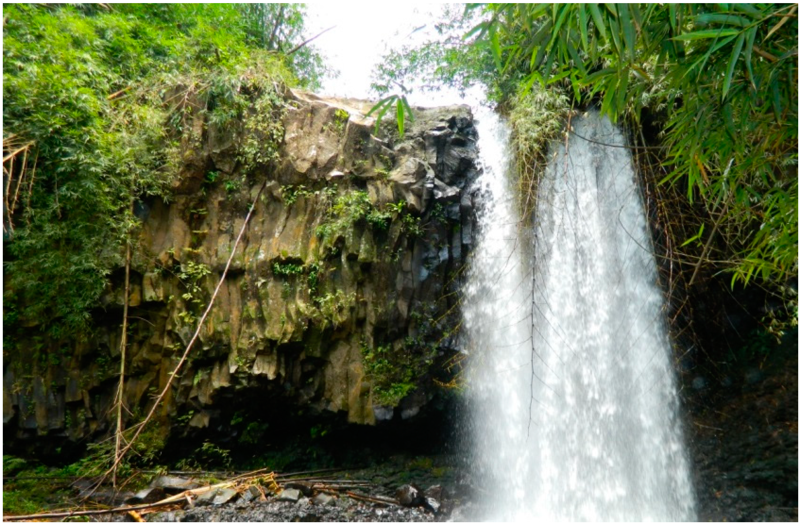 These volcanic features represent the retraction in all directions of lavas experiencing a slow cool-down, resulting in a hexagonal pattern due to the homogeneity of the rock and gradient of heat loss. By corresponding to a highly demonstrative record particularly relevant for the understanding of significant geologic changes assigned to a region, such geometrical features display documental value, which is complemented by the highly recreational function of the waterfall, which corresponds to scenic value [24].