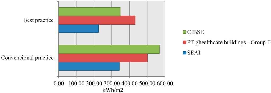 Nevertheless, this study was able to develop the first basis of comparison for this type of buildings in Portugal. In addition, the methodology presented in this research will be used to develop the benchmarks of the other sustainability parameters of a new tool to assess the sustainability of healthcare buildings.