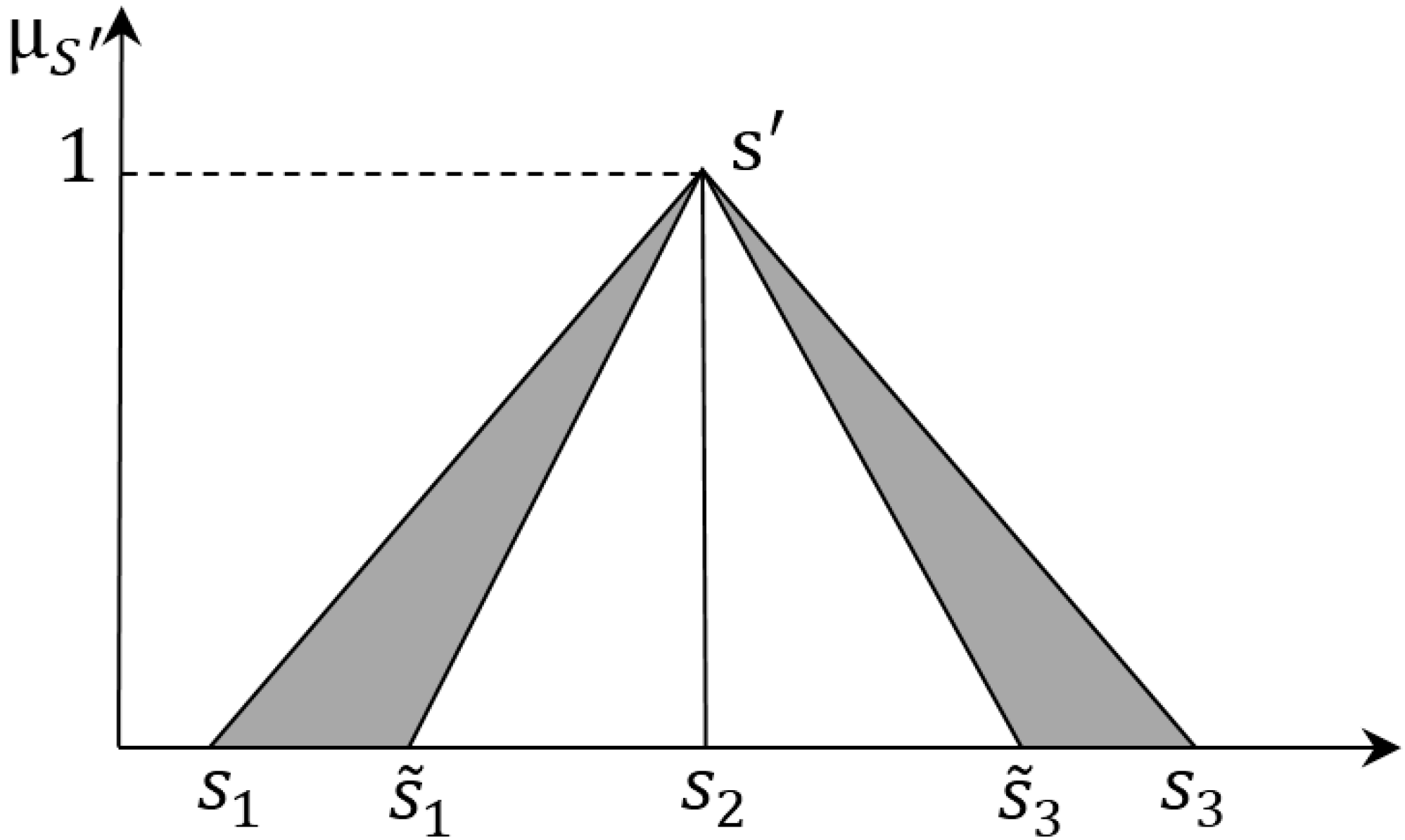 The gap can be simplified as an interval value , where and . Because some information is lost during the computation process, the interval value must convert into a crisp value immediately. Simultaneously, the maximum and minimum can be gathered from the crisp value, as below: