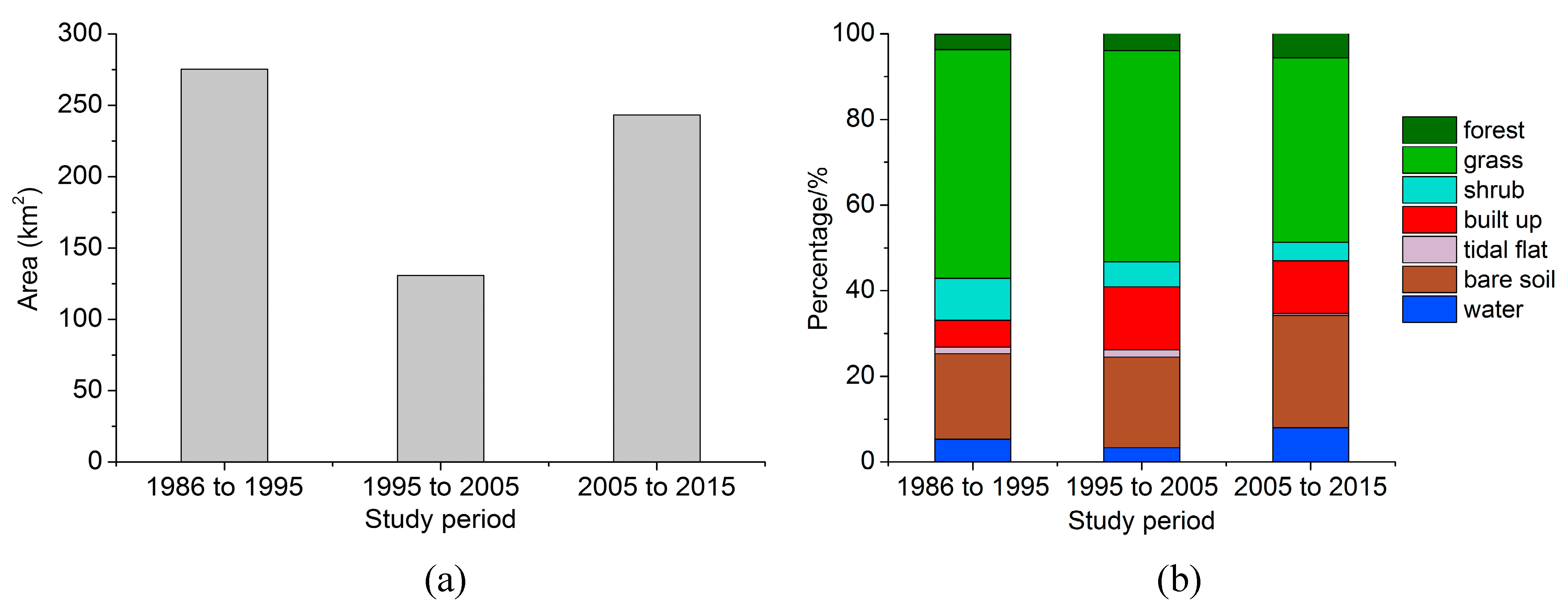 5], resulting in the conversion of plenty of wetlands, croplands and bare soil into built up areas including oil fields, chemical factories, harbors and residential areas.