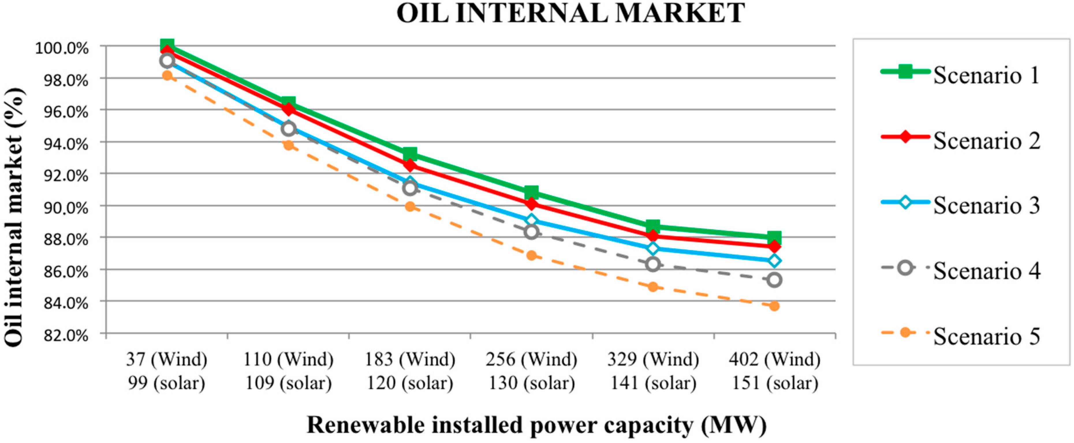 | RES | Renewable Share | LCOE | CO2 Emissions | Energy Spilled | Oil Internal Market | ||||||