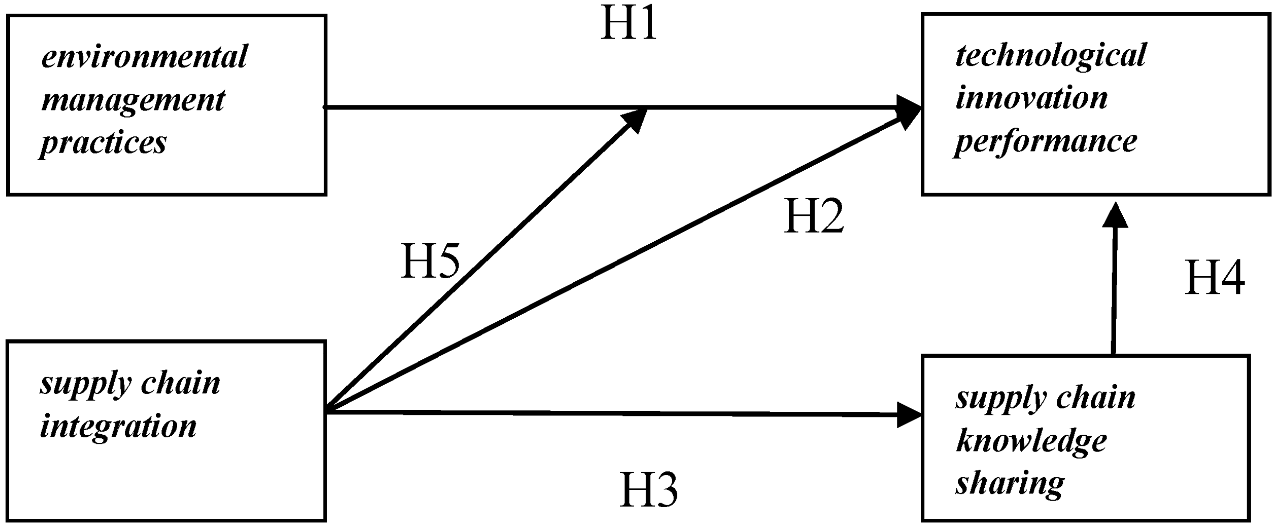 Therefore, supply chain integration, as an important supplementary factor, should not be ignored while exploring the relationship between environmental management practices and technological innovation. Therefore, we propose the following hypothesis: