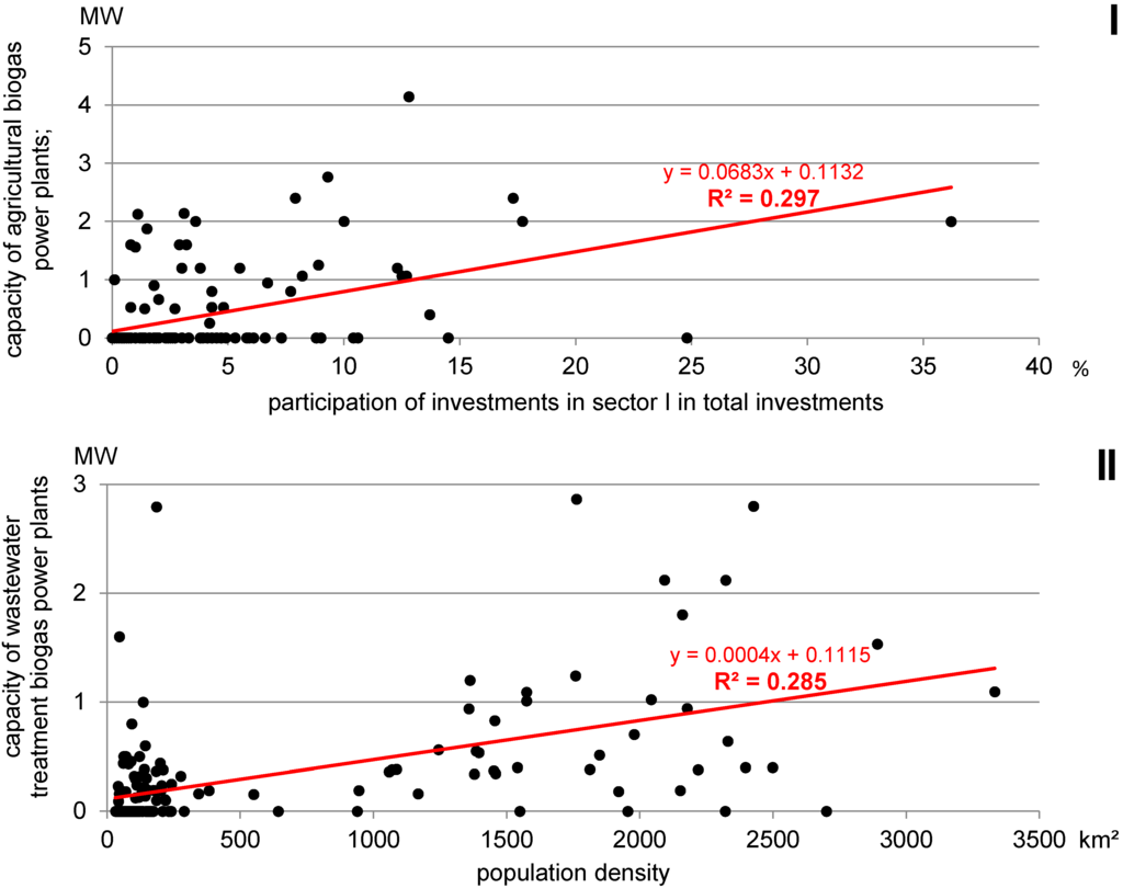 The study was based on the generally accepted methods for data quantification, processing, and presentation. For this purpose the authors used Statistica 9.0, IBM SPSS Statistics 22.0, and MapInfo Professional 12.0 software. In order to capture certain interdependences between the location of biogas plants and socio-economic characteristics, the correlation coefficients at the assumed significance level of 0.05%, and determination coefficients were calculated and a regression analysis was conducted for selected cases. The primary and secondary data, therefore, meet the criteria of credibility, methodological accuracy, reliability, and timeliness.