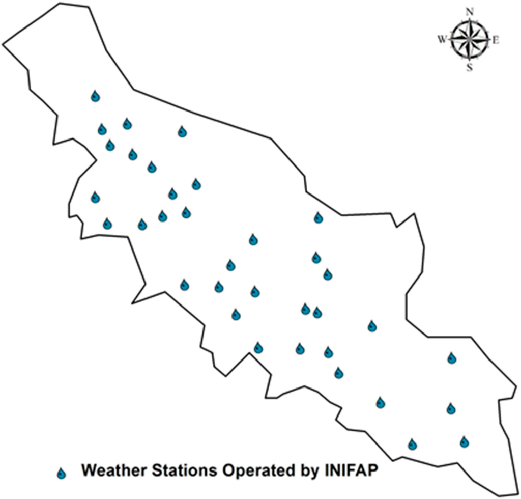 Weather stations of dry beans primary region of Mexico. Source INIFAP 2011 [25,26,27].