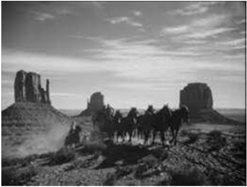 “Stagecoach”, John Ford’s masterpiece, 1939. The Monument Valley gives the scenes an unbelievable natural location [36].
