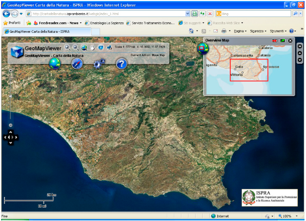 The Carta della Natura web GIS. Satellite image of the South of Sicily, where some WHS sites are located [20].