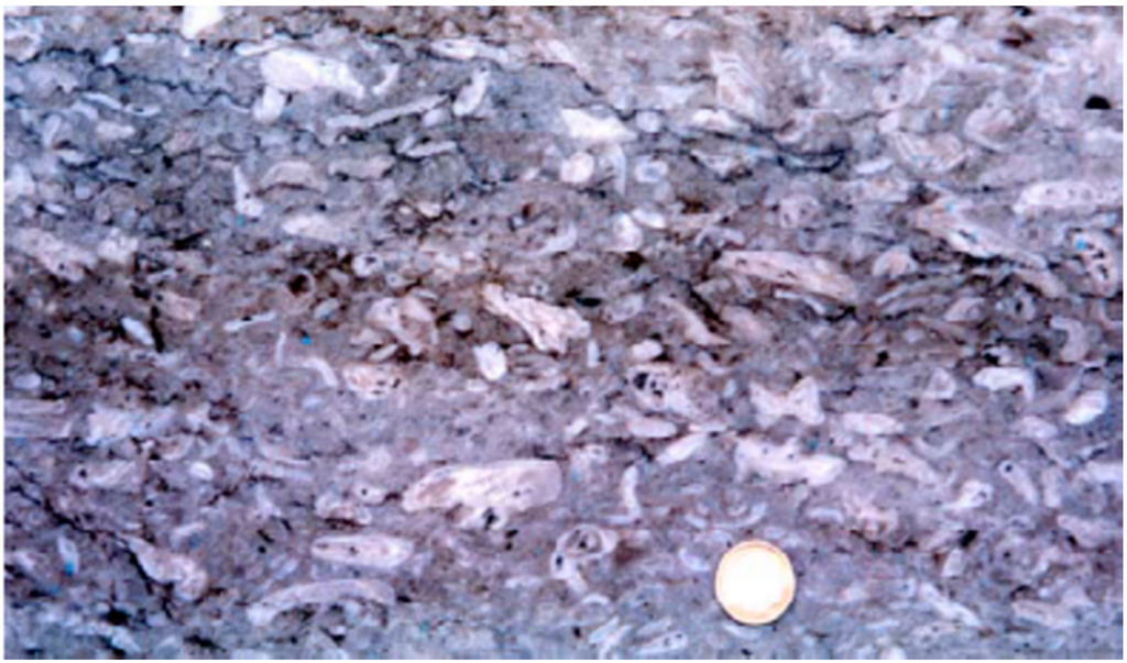 The so-called “pearled marble” with Rudists (“pearls”), in the Rudistae-bearing hat in the Cretaceous of Custonaci [50].