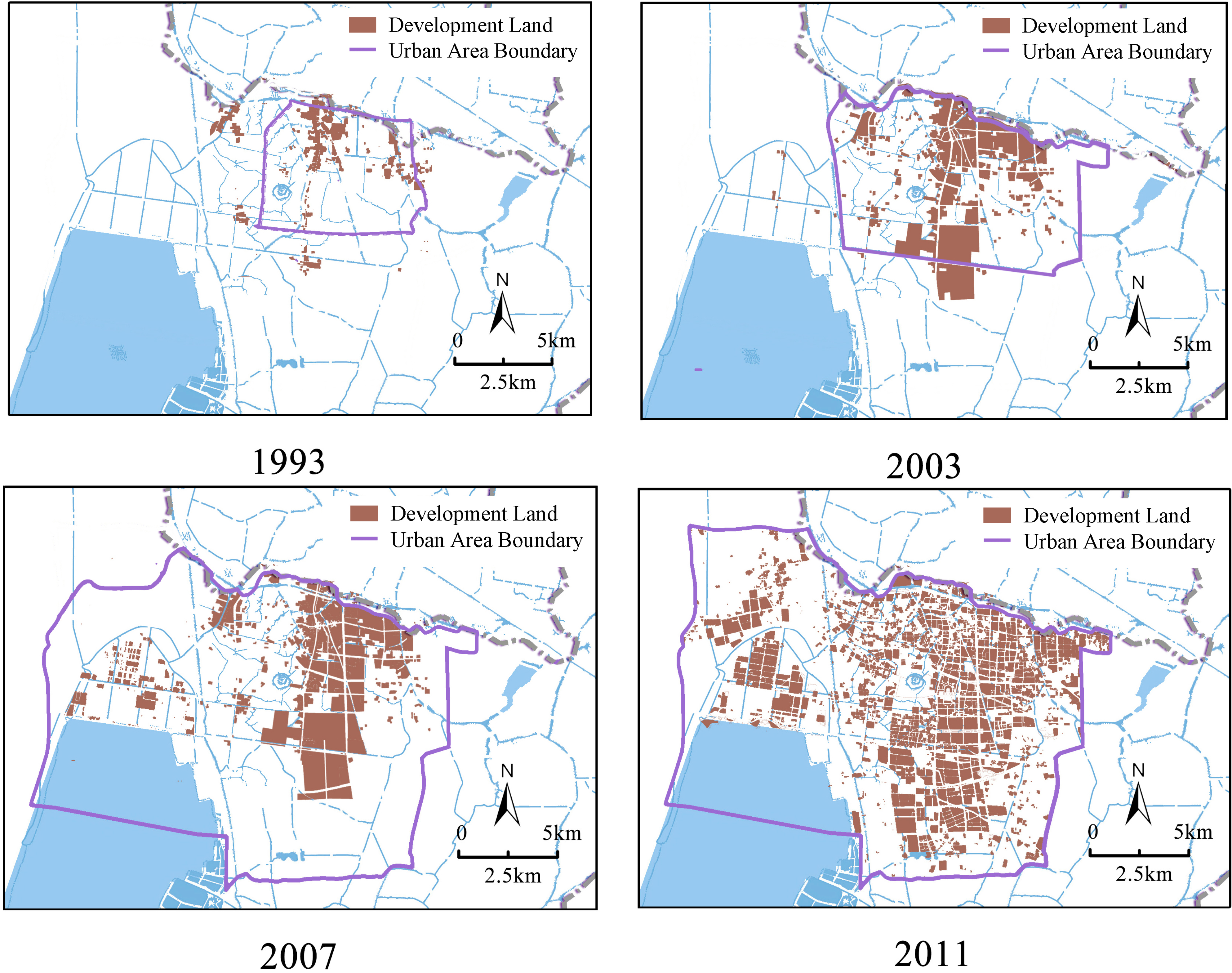 | Urban Land Use | 1993 (km2) | 2003 (km2) | 2013 (km2) | Growth (1993–2003) (km2) | Growth (2003–2013) (km2) |