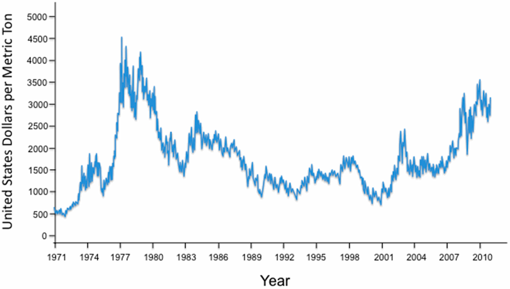 After almost a century of international trade in sheanuts that even saw attempts to build and run processing plants in Mali and in Nigeria in the 1980s, the mid-late nineties saw a virtual collapse in the price of cocoa (Figure 1) and a corresponding loss of demand for specialty fats made from shea [33,34,35,36,37].