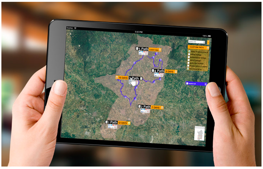 New forms of communication such as the Internet, social networks, and applications downloadable on smartphones or tablets, such as the one presented in this paper, are essential to improving the visibility and enhancing the promotion of tourism opportunities available in rural Marmilla. However, in this area, where some aspects of a digital divide remain, this form of communication has to be accompanied by formal and informal offline networks. Both modalities of communication are needed to promote the area in the long term, without relying on occasional advertising campaigns. Nevertheless, we must not forget that the successful integration of rural and cultural tourism can be achieved if there is agreement among the various stakeholders—including the local and regional administrators and the local community—to coordinate and encourage the development of local resources. They can, in fact, intervene and help the local tourism sector of Marmilla evolve for the better.