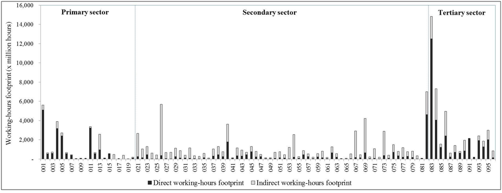 Working-hours footprint by economic sector.