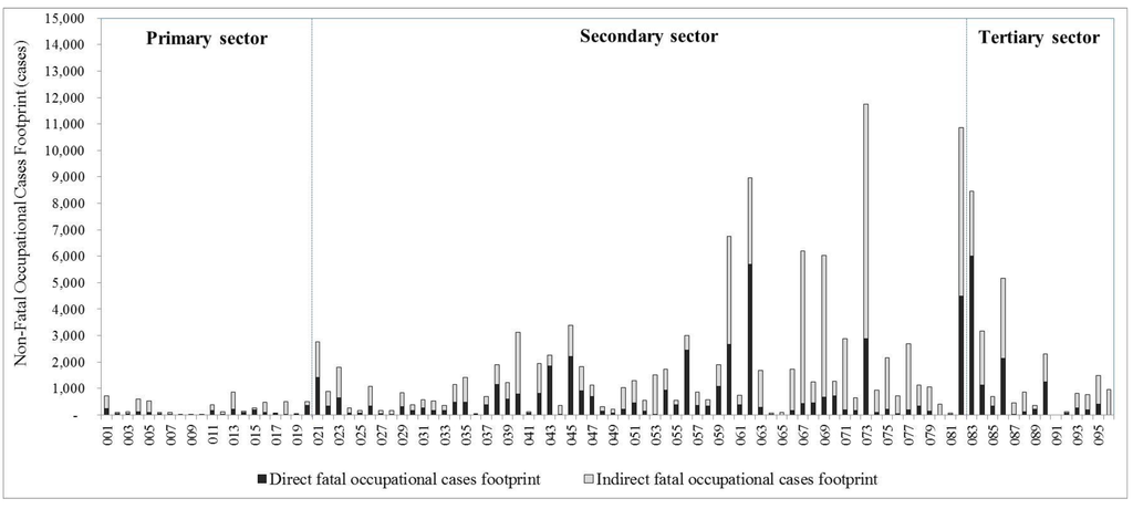 | Non-fatal occupational cases | Non-fatal cases in workplace | Cases-year | Cases of occupational injury where the workers injured were unable to work temporarily or permanently from the day after the day of the accident. | SSO (2006) [38] | 2005 |