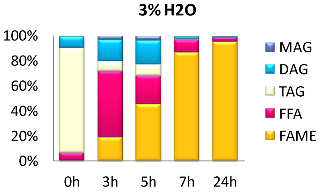 - Chen, X.; Du, W.; Liu, D. Effect of several factors on soluble lipase-mediated biodiesel preparation in the biphasic aqueous-oil systems. World J. Microbiol. Biotechnol. 2008, 24, 2097–2102. [Google Scholar] [CrossRef]