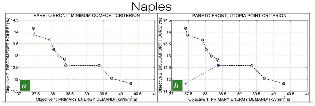 This process is called “Multi-Criteria Decision Making” (MCDM). The stakeholder can adopt different criteria for the MCDM. For instance, the occupant could select the solution that minimizes the thermal discomfort, and the owner could select the one that reduces the energy demand. In intermediate situations, other methods can be used for the MCDM. In particular, in our investigation, the two methods below described are adopted and compared.