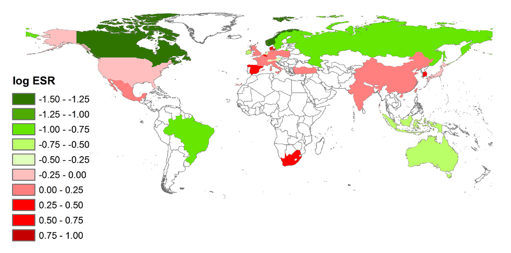 2.5.3. The Comparative Advantage of ESRs over ESDs in a Cross-National Context