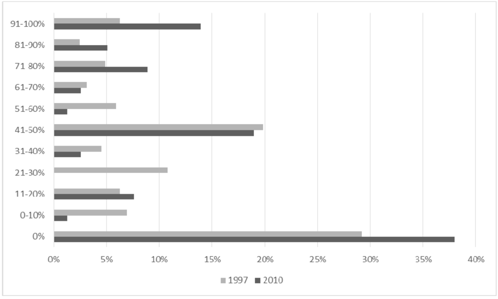 38] focused in particular on building precautionary measures and construction adjustments. They remarked that households in Dresden which experienced flooding in 2002 adopted one or more precautionary measure after the flood and significantly improved their adaptations. Whereas only 17% of households were prepared in a certain way prior to 2002, the number had increased to 67% by 2005 as a result of the flood experience and improved municipal flood risk management.