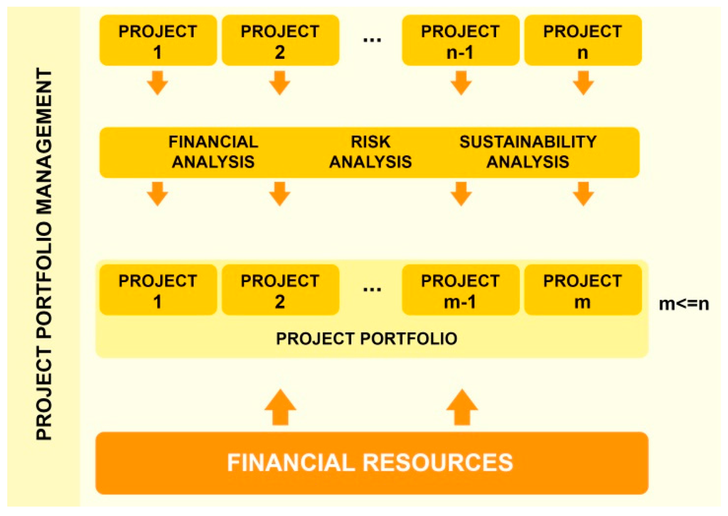 Sustainability is considered one of the most significant challenges facing society today. The concept of sustainability is widely applied by many companies through their mission statement and strategy. It is also one of the most popular research fields for scholars. More recently, the idea of sustainability has also been incorporated into project management [1,2]. At the 22nd World Congress of the International Project Management Association (IPMA) in 2008, IPMA President Mary McKinlay stated that “the further development of the project management profession requires project managers to take responsibility for sustainability” [3]. The consideration of sustainability is gaining a greater prominence in the field of project portfolio management. There is an increasing understanding of the need to develop methods, tools and techniques to integrate sustainability criteria into the management of projects, as well as a growing need of knowledge and concepts on how to adopt sustainability in project portfolio management [4,5,6,7,8,9,10]. Silvius and Tharp [11] concluded that “the relationship between sustainability and project management is […] picking up momentum”.