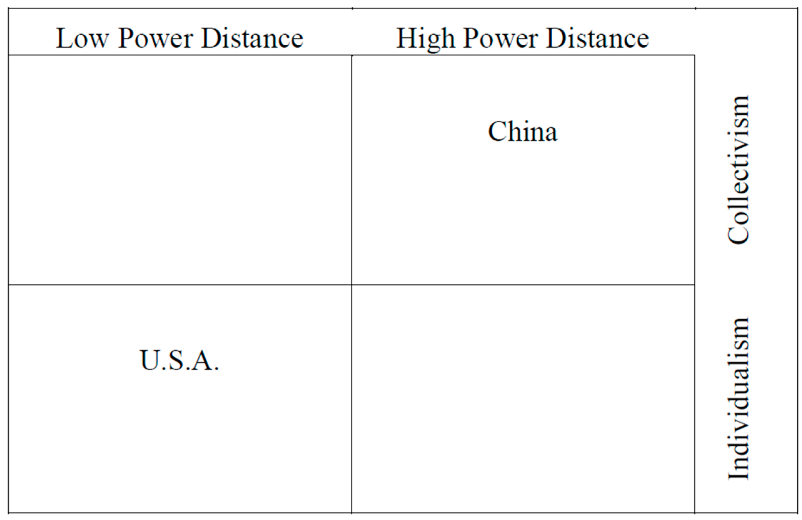 Power distance and individualism/collectivism in China and U.S.A.