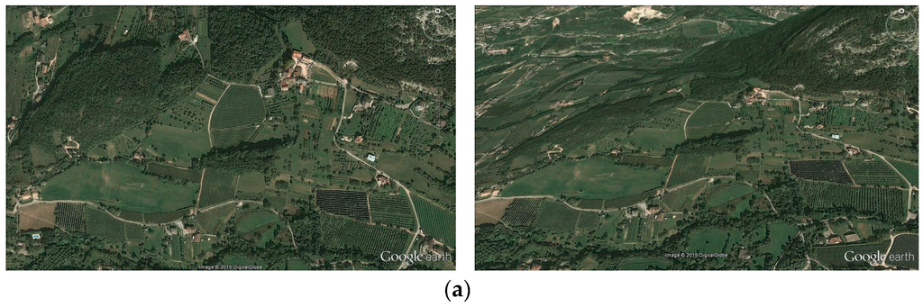 Pictures depicting high-quality crop mosaics and mixed agricultural-natural landscapes in Italy (photographs courtesy of Google Earth, 2015). (a) Orchards intermixed with pastures, wetlands and woodlots in the Alps (Trentino, northeastern Italy); (b) Mountain cropping systems (pastures and cereal crops) in the Apennines (Latium, central Italy); (c) Old-growth olive groves intermixed with garden crops and forest fragments in southern Italy (Calabria, southern Italy); (d) Traditional vineyards with unmanaged pastures and Mediterranean maquis in Pantelleria Island (Sicily).