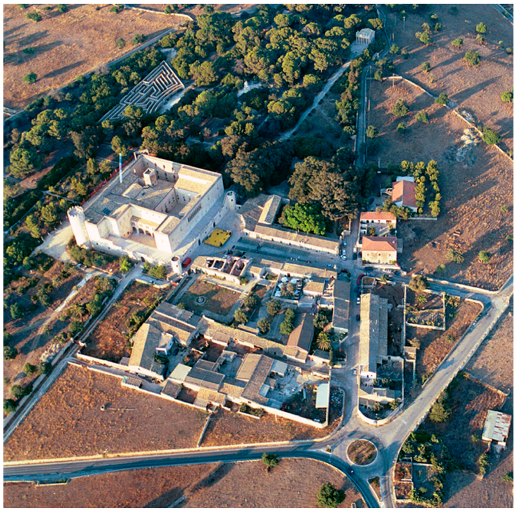 - Ingallinera, F. Castello Donnafugata dall'alto. Available online: http://www.panoramio.com/photo/4129944 (accessed on 17 December 2015).