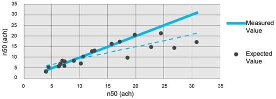 Numerous studies have pointed out that one of the most important aspects to reduce energy consumption and avoid heating losses is increasing airtightness in buildings [,,]. It is because of this that most European countries have developed regulatory setups to limit energy consumption in homes associated with losses from air leaks, norms which, in some countries, have been applied for over a decade and that have gradually been increasing their rigorousness.