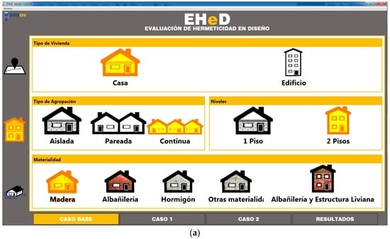 According to [], the first database of air permeability values is created starting from the airtightness baseline study of thermal envelopes of residences built in Chile, information that allows establishing the calculation basis of the EHeD software. This study covers each region of the country, where the relevant factors are evaluated, namely the age of the building, the predominant wall material, the number of floors, the area built and the regulatory thermal demands. Once this information is obtained, the parameters which the housing universe must comply with to evaluate the airtightness were established. A sample of 191 cases was taken where the impact of each one of these elements was detected.