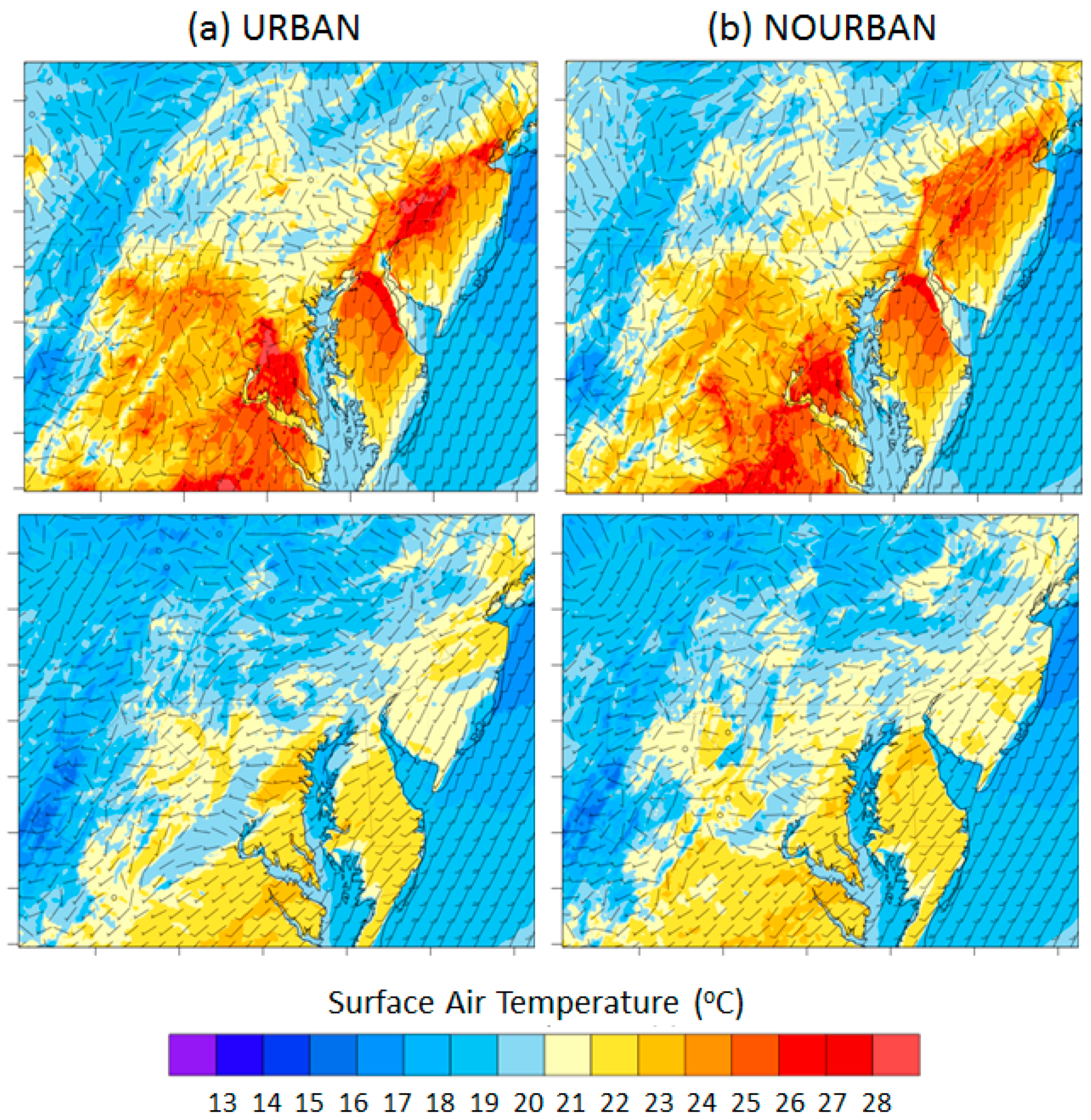 - Lin, Y.; Liu, A.; Ma, E.; Li, X.; Shi, Q. Impacts of future urban expansion on regional climate in the Northeast megalopolis, USA. Adv. Meteorol. 2013. [Google Scholar] [CrossRef]