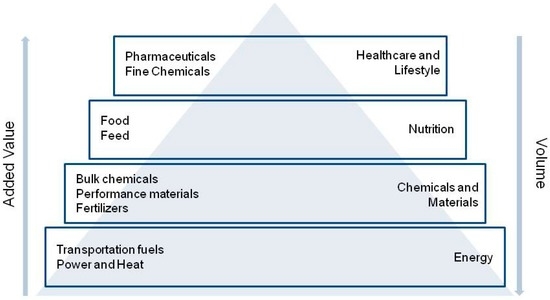Biomass value pyramid (Adapted from: Businessplan Biobased Economy [9]).